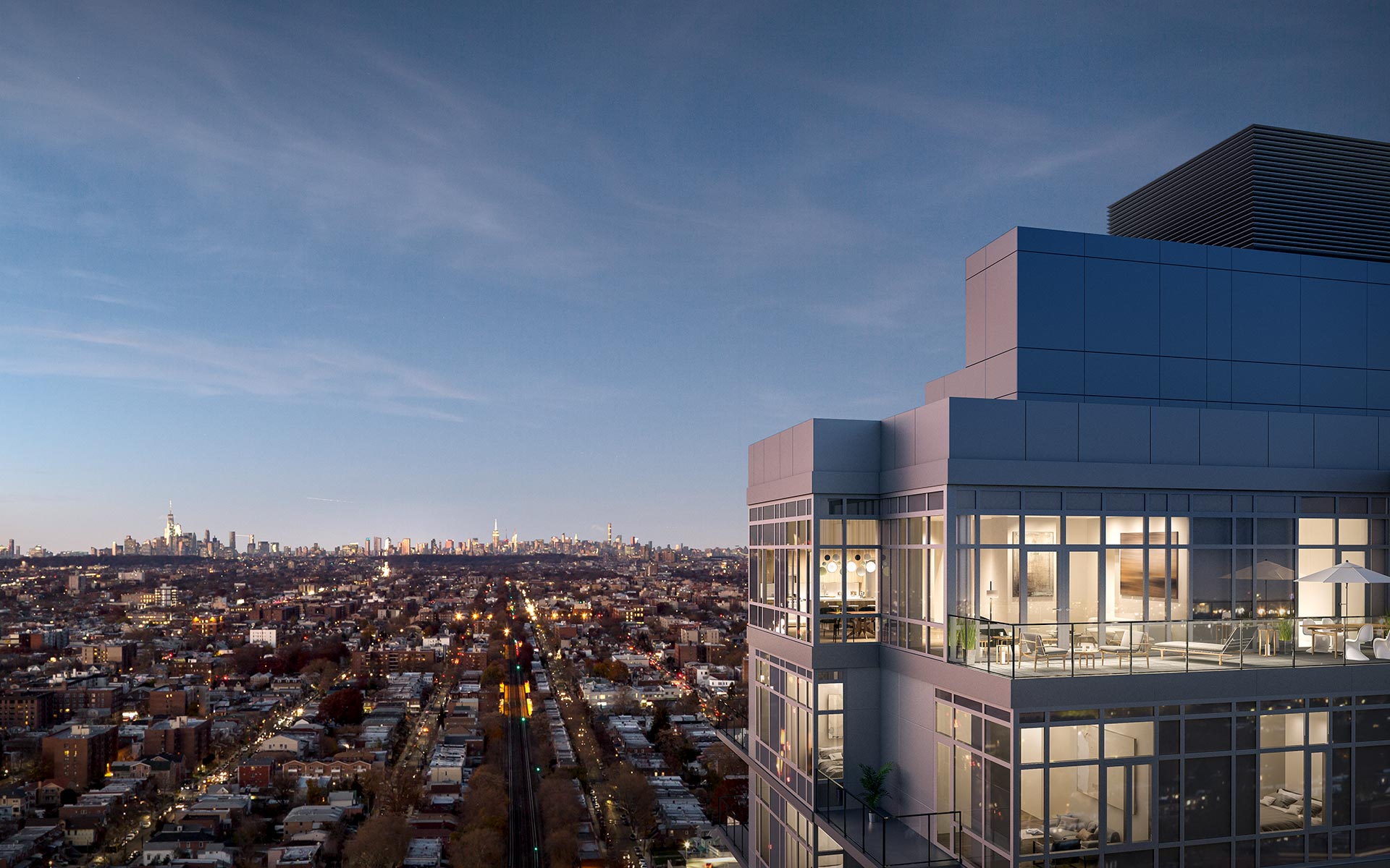 Three floors of penthouses sit atop 1 Brooklyn Bay, including two large three-bedroom homes with over 2,100 square feet of indoor and outdoor space on the 28th and 29th floors. On the highest floor, two grand four-bedroom penthouses offer spectacular aerial views and over 2,800 square feet of indoor and outdoor space. Penthouse kitchens feature a high-end stainless steel appliance suite that includes a Viking oven or double oven with hood, Sub-Zero 36” refrigerator and Viking wine cooler.